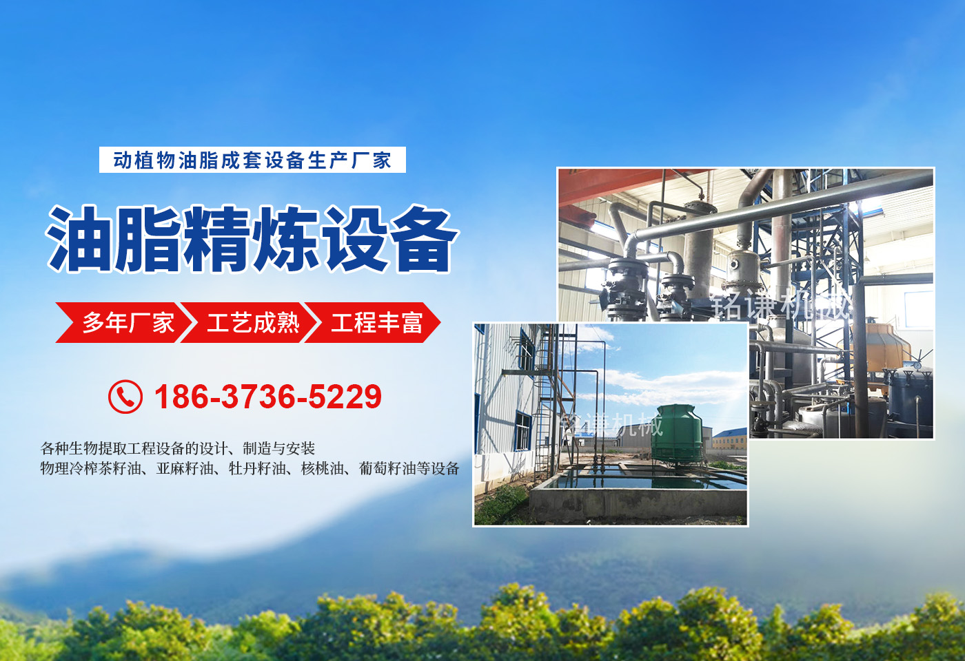 河南省銘謙機械設備有限公司,是集開發、科研、生產、安裝、調試、售后服務為一體的現代化企業?! ∥夜緭碛袃灹嫉募夹g設備,為動物油熬煉設備,無公害化處理設備,核桃油設備,茶籽油設備,牡丹籽油設備,牡丹籽油機械產品的品質提供了有力的技術和質量保證?! 镉土项A處理、榨油成套設備的設計、制造與安裝?! 镉土辖鲈O備的設計、制造與安裝?! 锇脒B續,連續(化學)物理精煉設備的設計、制造與安裝?! 锊枳延停档ぷ延停颂矣?,亞麻籽油,葡萄籽油的設備的設計、制造與安裝?! 锔鞣N生物提取工程設備的設計、制造與安裝。 ★各種(豬、牛、羊、雞、鴨等)油廠熬制、精煉設備的設計、制造與安裝?! 餄庀阈突ㄉ?、菜籽油、茶籽油、亞麻籽油、葵花籽油等設備的設計、制造與安裝?! 镂锢砝湔ゲ枳延?、亞麻籽油、牡丹籽油、核桃油、葡萄籽油等設備的設計、制造與安裝。 ★豆類清理設備、雜糧脫皮制粉設備、小麥制粉設備、大米加工流水線、小米加工流水線等設備的設計、制造與安裝?! 锔鞣N過濾設備,化工設備的設計與制造?! ∥覀円怨に嚭托抛u求發展,以質量和設備求生存。堅持“質量為上,用戶為上”的宗旨為客戶提供完善的技術咨詢和售后服務。始終把產品質量作為企業生存、發展的主要要務,竭誠歡迎新老用戶光臨指導。
